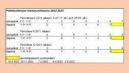 Opetussuunnitelmat, työpäivät, periodit ja viikon työjärjestys