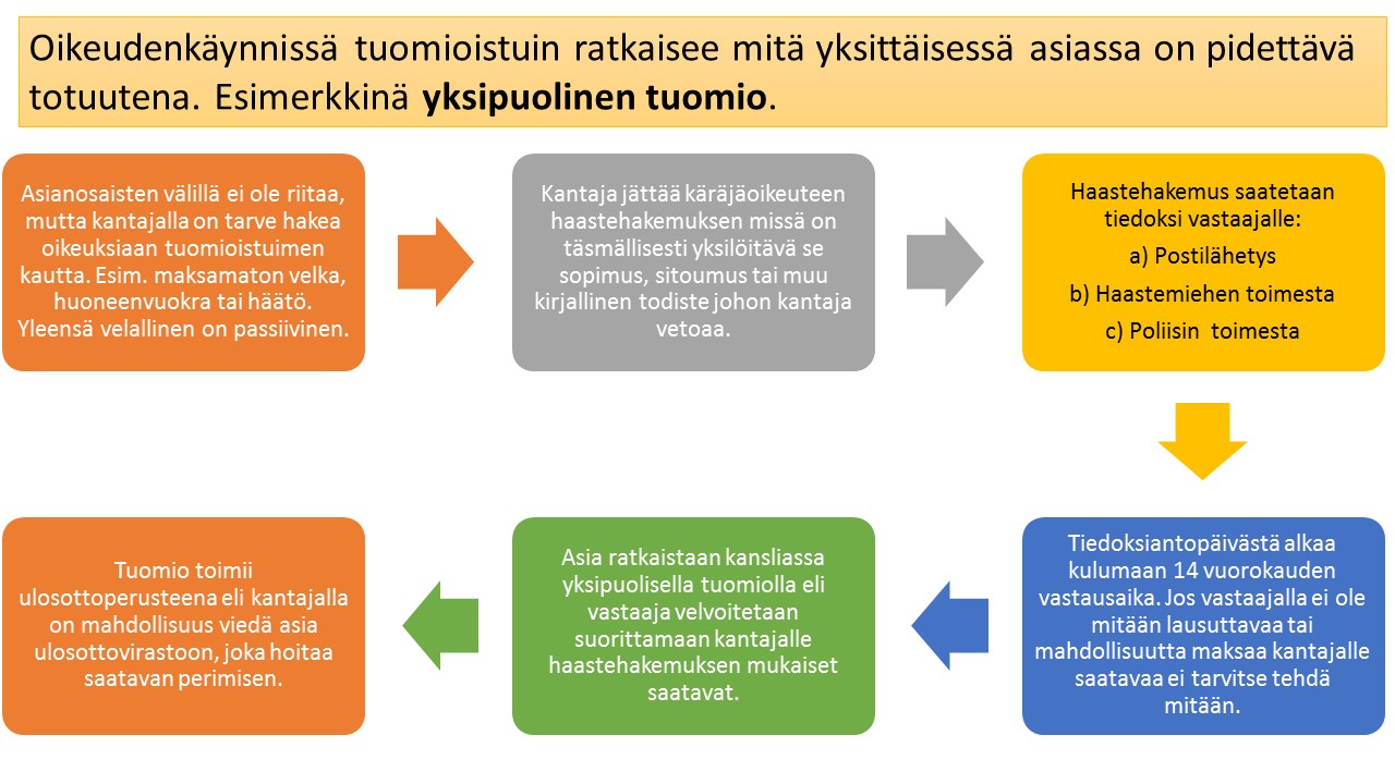 2. Mitä tarkoitetaan yksipuolisella tuomiolla velkomisasioissa?