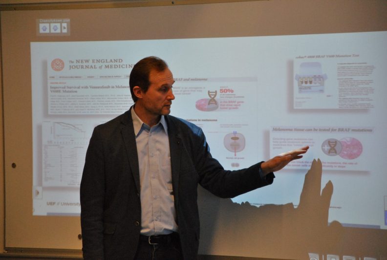 Saimme tänä lukuvuonna myös vierailijoita sekä eduskunnasta että Euroopasta. Syyslukukauden alkupuolella meillä vieraili Brysselissä EU:n komissiossa työskentelevä, Pieksämäen lukiosta maailmalle lähtenyt Mauno Hänninen. Hän kertoi EU:n toiminnasta sekä yleisellä tasolla että työpaikkana. Opiskelijamme saivat myös hyviä vinkkejä, miten täältä Savon sydämestä on mahdollista lähteä työskentelemään maailmalle ja minkälaisia aineita kannattaa valita jo lukiossa, jos tällainen vaihtoehto kiinnostaa.