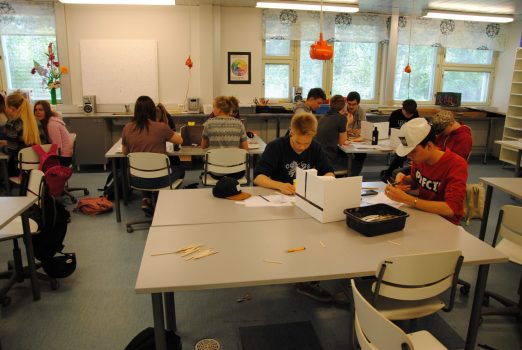 Tämän lukuvuoden haasteena on ollut ottaa vanhojen opetussuunnitelmien rinnalla käyttöön uutta OPS:ia ensimmäisen vuoden opiskelijoiden kanssa. Perinteisen tekemisen rinnalla tietokoneet ovat olleet varsin ahkerassa käytössä sekä töiden suunnittelussa että toteuttamisessa. KU1-, vKU2- ja vKU5-kurssien sisältöihin on voitu liittää uutena 3D-suunnittelua ja –tulostamista. Syksyllä saimme käyttöön MiniFactory-tulostimen ja suunnittelussa käytimme lähinnä TinkerCad-ohjelmaa. Tämä on vielä uutta ja kehittyvää tekniikkaa, mutta olemme voineet vähän tutustua perusasioihin ja harjoitella pienten esineiden suunnittelua ja tulostamista. Tietokoneiden toimivuus uuden tekniikan kanssa on asettanut omia haasteitaan.