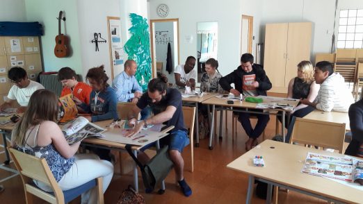 Elämänkatsomustiedon kurssilaiset miettivät hyvän elämän sisältöä Seutuopiston suomenkielen opiskelijoiden kanssa.