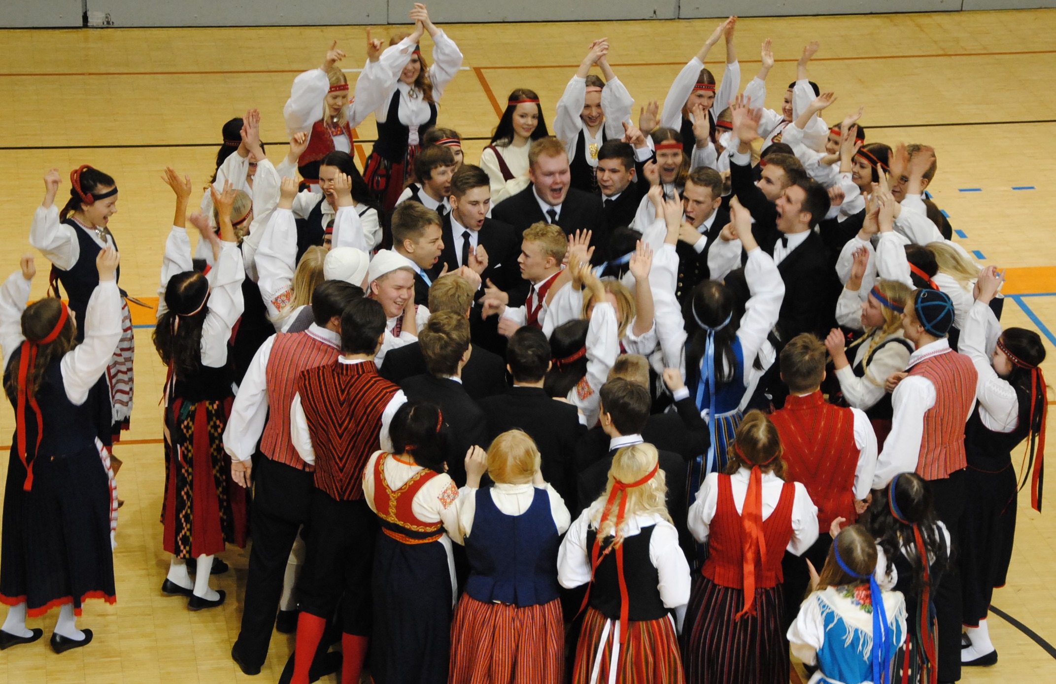 12.2.2015: Abiturientit ovat marssineet viimeisenä koulupäivänä poloneesin 1960 -luvulta lähtien. Oman tanssin jälkeen on riemu katossa. Kuva: Ari Kallio.