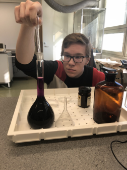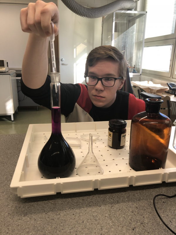 Tommi Nenonen tekee tarkkaa työtä liuoksen kanssa.