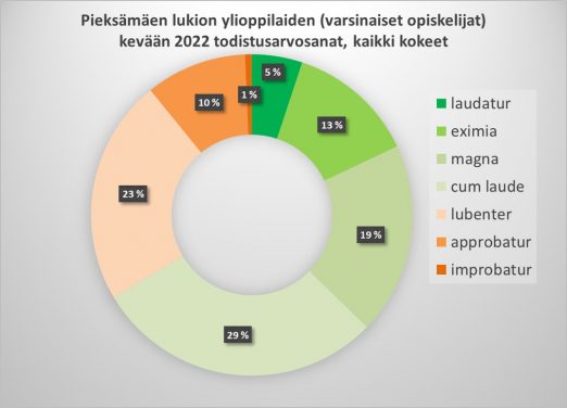 Kevään 2022 ylioppilaiden YO-todistusten arvosanat.