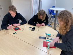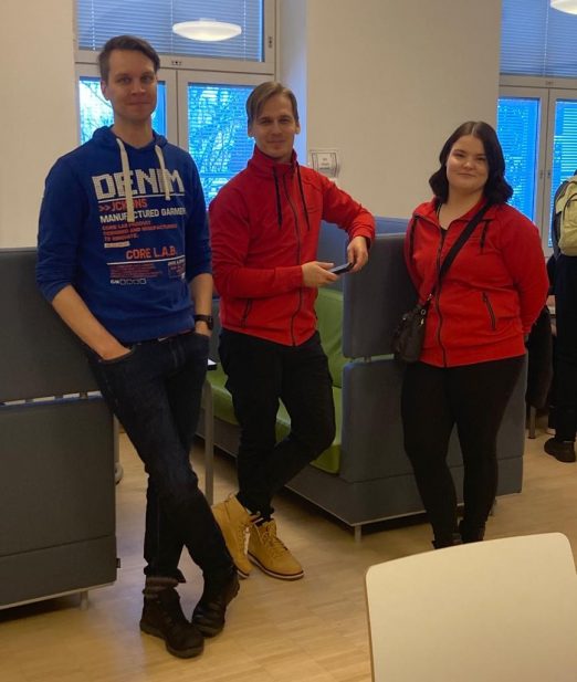 Kuraattori-Eetu ja työpajan Arttu ja Pihla lukusalissa opiskelijoiden tukena ja ilona.