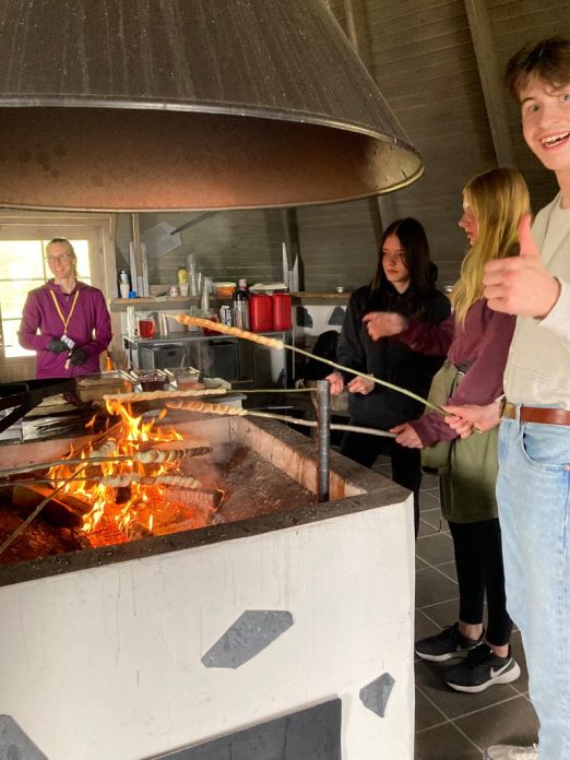 Ykköset ja kansainväliset vieraat tikkupullan paistossa opon johdolla Partaharjussa.