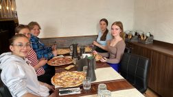 Hallituksen jäseniä ”kiitospizzalla”