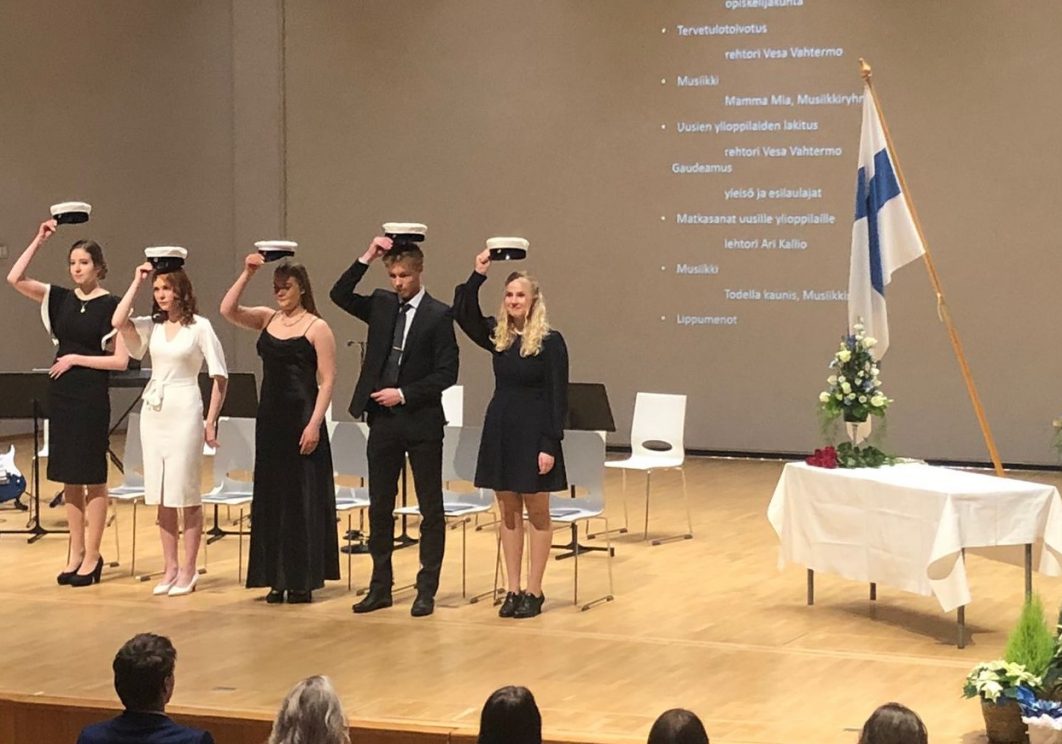 Kevään 2023 lakkiaiset pidettiin Poleenin upeassa salissa, missä ylioppilaiksi julistettiin 59 koulumme opiskelijaa, joten yhteensä ylioppilaita lukuvuoden aikana valmistui 64.