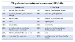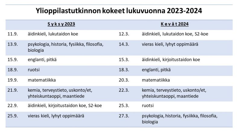 Lukuvuoden 2023-2024 ylioppilastutkinnon koepäivät ja aikataulut
