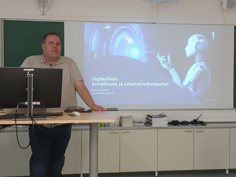 13.9.2024 Medialukutaidon moduulin (ÄI12) tunneilla vieraili yliopistonlehtori, KTT Panu Moilanen Jyväskylän yliopiston Informaatioteknologian tiedekunnasta. Hän kertoi digitaalisesta turvallisuudesta ja informaatiovaikuttamisesta. Moilasella on vakuuttava meriittiluettelo ja laaja asiantuntemus, esittely https://www.jyu.fi/fi/henkilot/panu-moilanen Panu Moilanen on kirjoittanut ylioppilaaksi lukiostamme 1994. Hänestä tehtiin samalla lehtijuttu mediakurssilaisten toimesta.