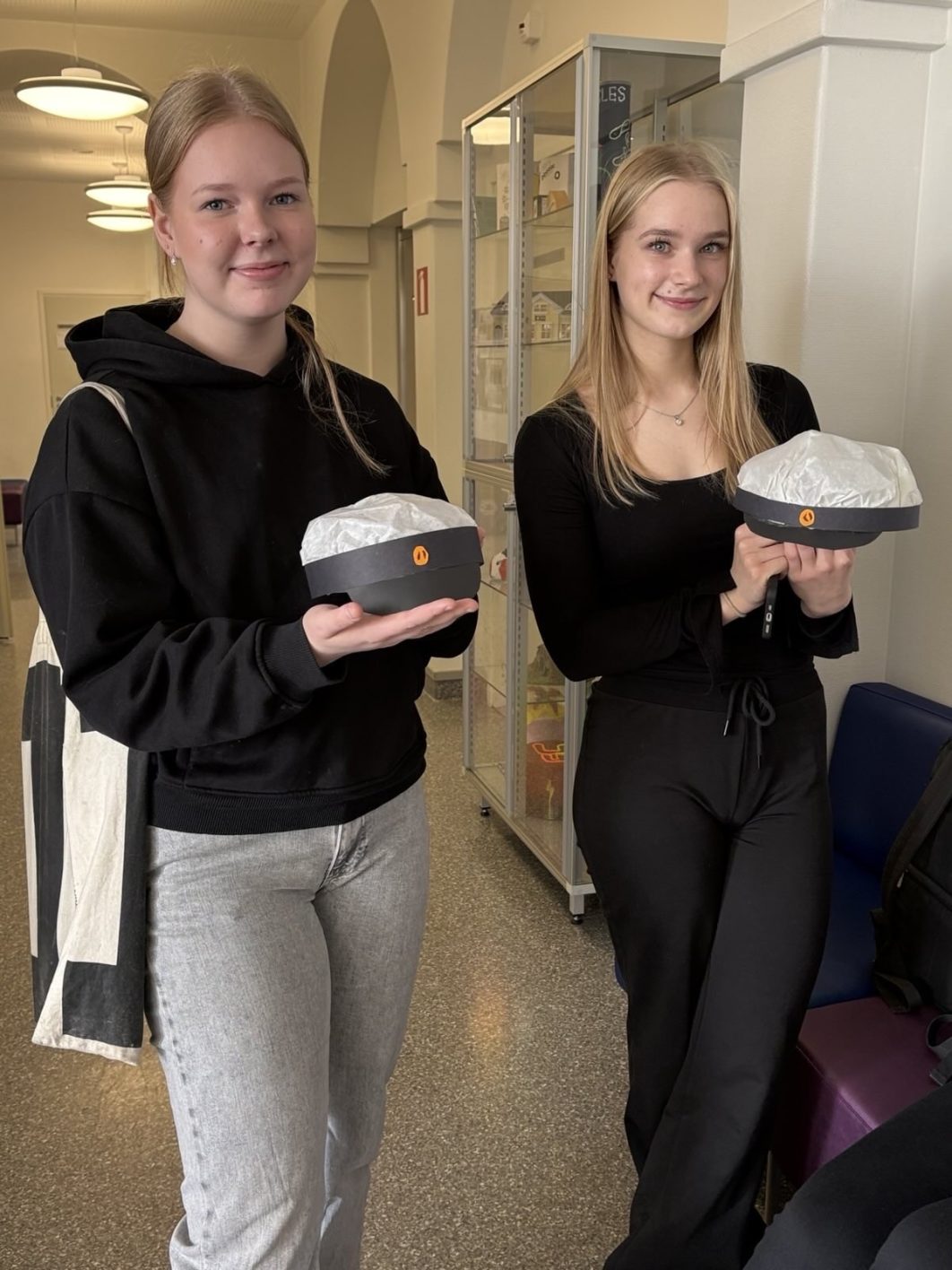 Vilma Kerälä ja Iida Remes päättivät elvyttää vappuisen Onkipojat-patsaan lakitusperinteen ÄI08:n kulttuuritietoudessa. Lakit valmiina!