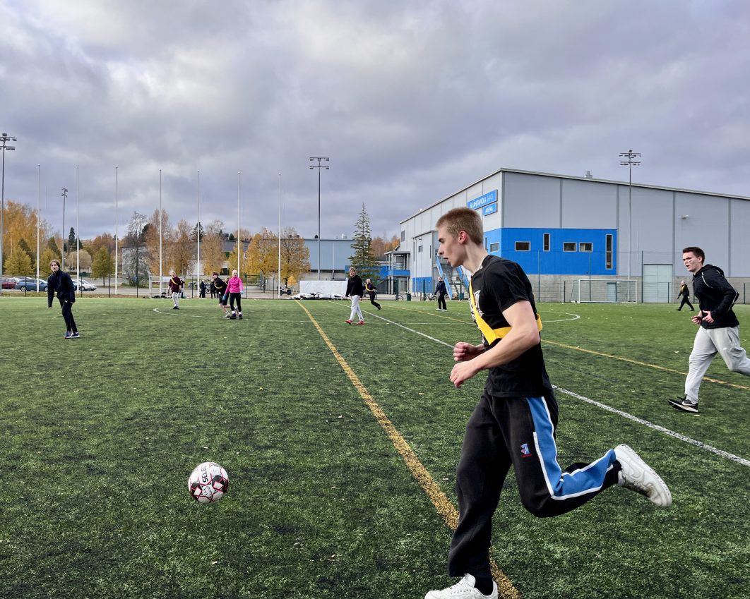 Liikunnan opetuksesta vastaa Pirjo Ruotsalainen Lokakuussa järjestettiin heti perinteeksi muodostunut jalkapalloturnaus, joka kisattiin vuosiluokkien kesken. Abit veivät tällä kertaa voiton.